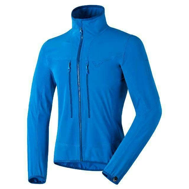 The Dynafit TLT DST Jacket is the perfect piece for athletes on the move in the mountains. It’s a jacket that will cut the wind and snow whether you‚’e out for your morning or evening laps or a full day of touring. The TLT Softshell is a softshell without a membrane so that moisture and heat easily move away from your body and because there is no membrane the jacket could be stitched in a dense double weave to provide wind resistance and water repellency. The TLT DST Jacket has large chest pockets big enough to throw in your skins or water bottles. A nice elastic cuff makes the fit comfortable and helps protect against the elements. If you are often hot while skinning, but hate the biting cold this is the jacket for you. Breathable, yet providing just enough protection so you can stay comfortable in a range of conditions.