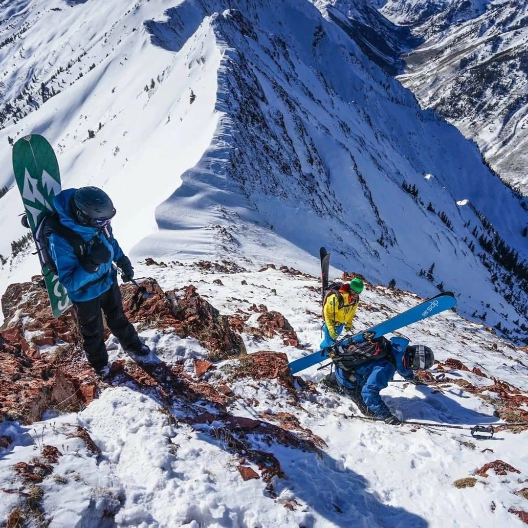 The mountains surrounding Aspen offer countless backcountry ski mountaineering options. Our AMGA trained/certified guides will not only take you into the backcountry to climb and ski/ride some of the amazing peaks of the Elk Range, but will teach you modern ski mountaineering and snow climbing skills, too. Some of our favorite areas offer untracked ski ascents/descents of as much as 4,000 vertical feet, and are truly unforgettable experiences. With relatively easy access to the Elk range peaks, such as Hayden Peak or Mount Sopris, offer great ski touring and powder skiing.Â