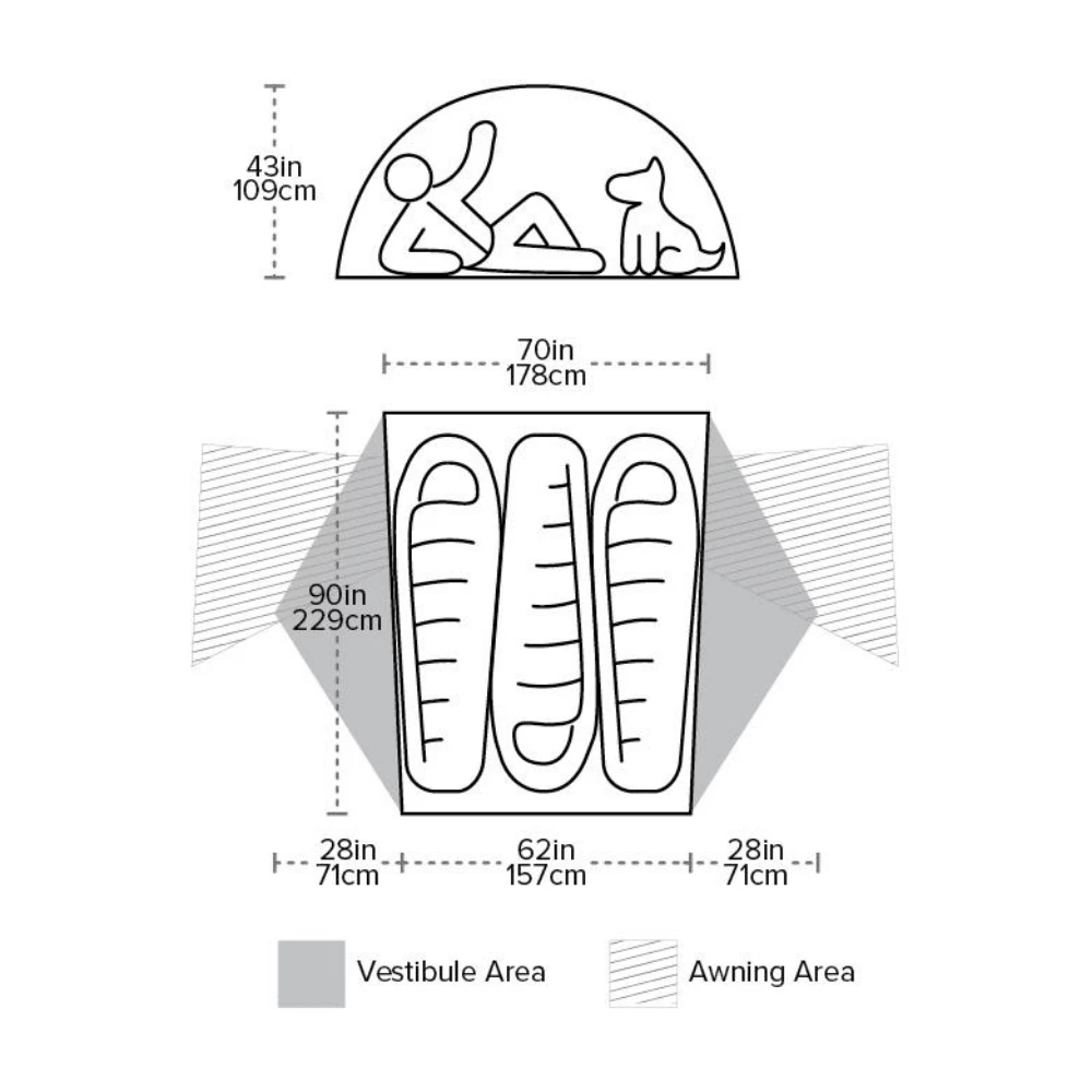 Available in both 2 and 3 person versions, Big Agnes didn’t sacrifice comfort for weight when designing the Copper Spur HV. Inner pockets for your phone and other small gear help you keep your base camp organized and vestibule awnings can be pitched with your trekking poles, for mid-day shade on down days, without needing to carry the weight of extra poles.Â