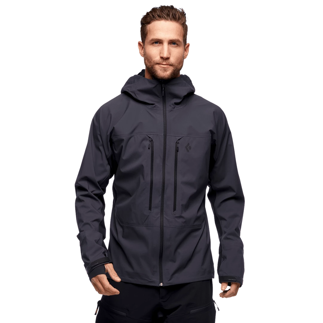 The Black Diamond Dawn Patrol Hybrid Shell is specifically engineered to provide shelter from the elements, while remaining as breathable as possible. The Dawn Patrol Hybrid Shell features soft shell material in key places where your body gets the hottest, allowing extra ventilation. While your chest, shoulders, and hood remain windproof, and waterproof with a 20,000mm rating. The Dawn Patrol Hybrid Shell comes with 4 way stretch technology, built in center front dual zipper allowing access to mesh pockets that are highly breathable. The Hybrid jacket also comes with an internal media pocket, ski helmet compatible hood, and velcro cuffs with integrated lightweight wrist gaiters.