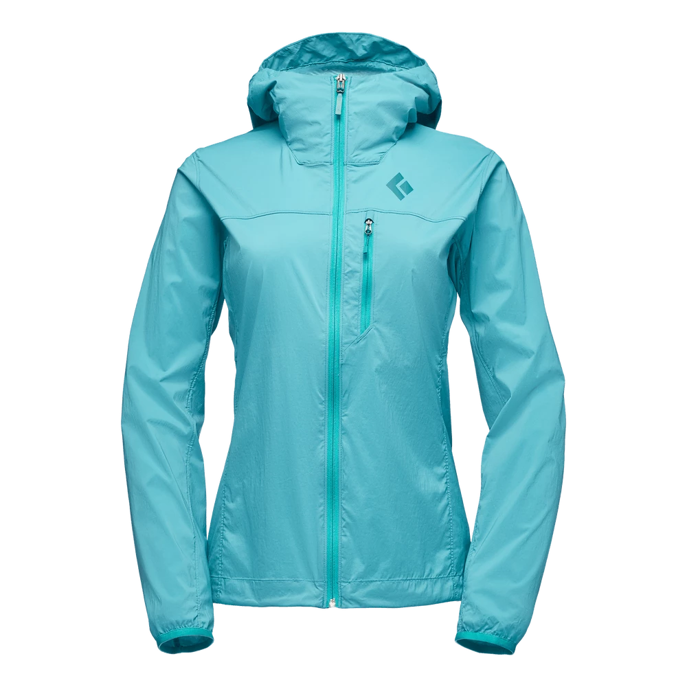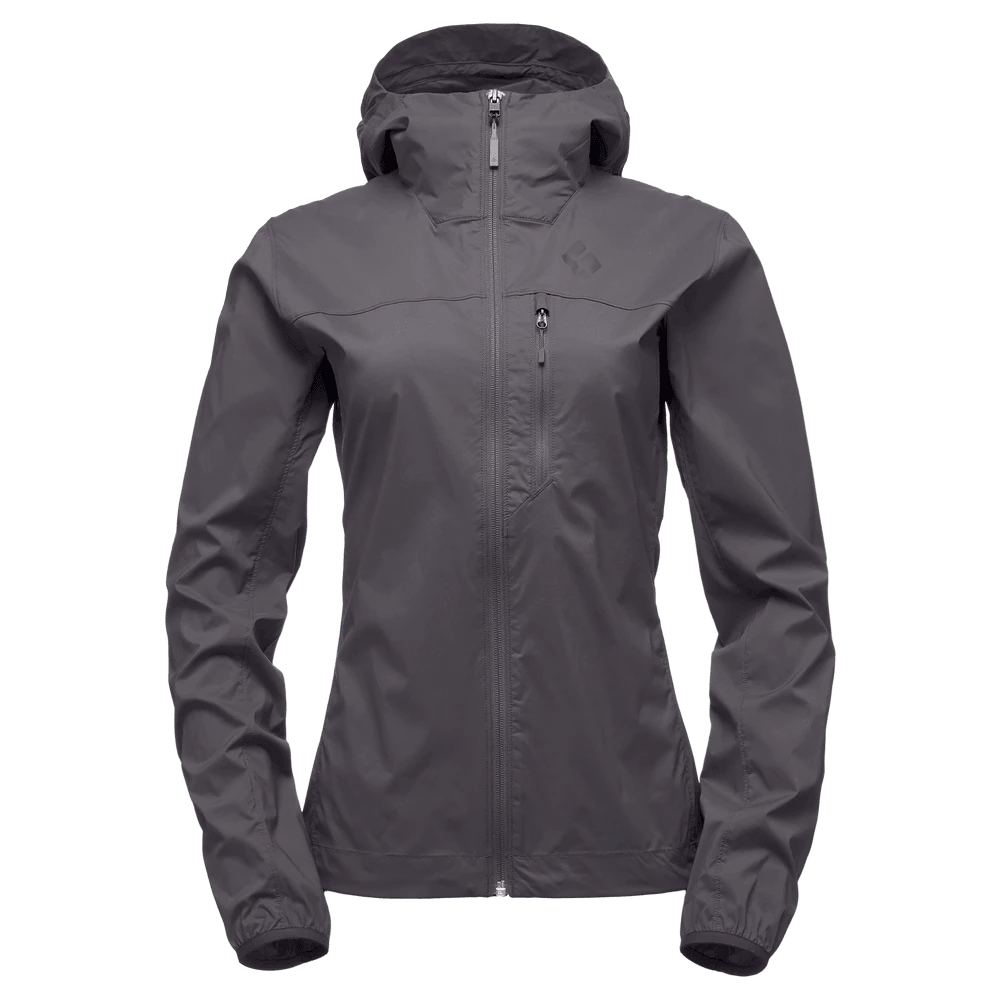 An ultralight softshell designed to shield weight-conscious climbers from ridgeline gusts and light weather, the Black Diamond Alpine Start Hoody features Schoeller stretch-woven fabric to provide highly breathable and highly packable weather resistance. A gusseted construction offers unrestricted freedom of movement, while the adjustable hood fits over a climbing helmet. The jacket also stuffs into its own chest pocket, which features an internal carabiner clip loop for attaching to your harness.