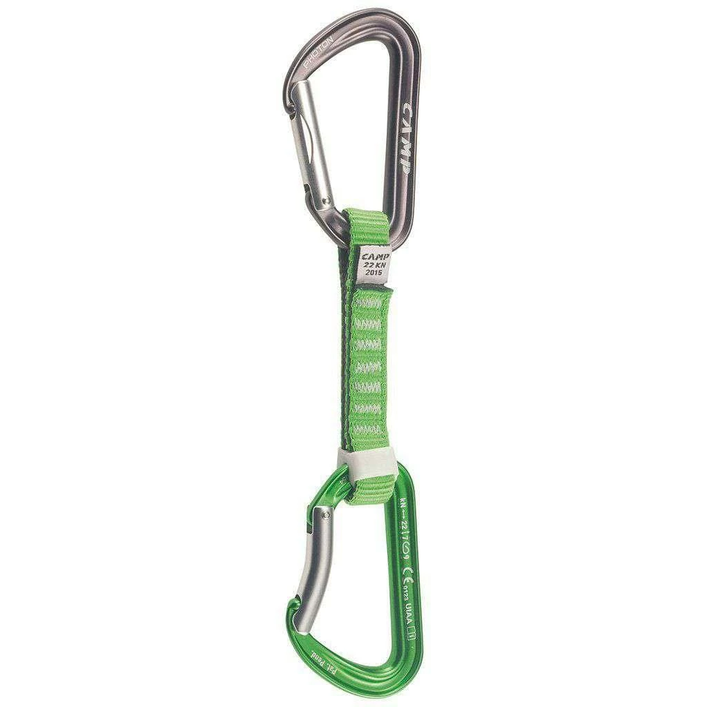 The Photon Express is ready for your best on-sight attempt, where weight matters most. The key locking Photon provides fast and accurate clipping. With a straight gate for clipping bolts and bent gate for clipping your rope. Coming in at under 3 ounces in weight and a redesigned dog bone, the Photon is more rigid in tension and strength but without the added weight. As an addition the dog bones are equipped with Karstop Evo retainers to prevent the rope end carabiners from slipping.