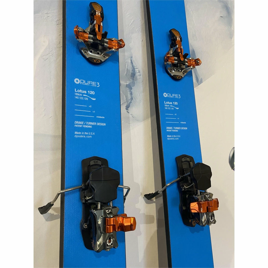 In DPS’s Pure3 construction, the Lotus 120 is 189cm long and with sidecut dimensions of 140/122/126. This is a big ski. But the big ski heft is conspicuously absent, weighing in at just under 2000g per ski. With an overly-generous tip rise, don’t concern your self with any premonition of sinking these skis in deep snow. The tails remain traditional with little tail release – creating a ski with a whooping 35m turning radius. Yes, these skis charge. Your dream date with the Lotus 120 Pure3 would look like slashing/slarving GS style turns down a bottomless powder field, and doing that again and again due to its relative light weight. For the uphill skier who likes fast pow or the resort ripper who wants two surfboards to slay the lifts – the Lotus 120 has you covered.Â