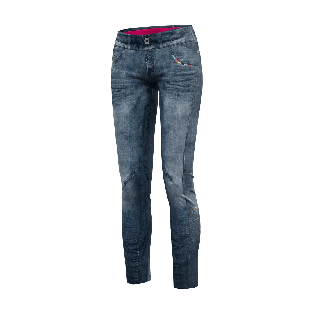 From trail, to crag, to a drink at the bar, the Crazy Ideas Women’s Wonder Magic Light pant can do it all with style and comfort. The Revolutional Italian fabric keeps these lightweight and soft with an elastic waistband providing additional comfort and adjustability. Each piece of jean pattern comes hand cut to perfectly match the seams, making the Wonder Magic Light pants quite unlike anything else in performance outerwear, and ready to be worn by your beautiful self.