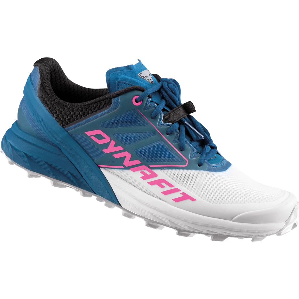 The women’s Dynafit Alpine trail running shoe is an extremely versatile shoe for middle to long distances. Perfect for eluding grizzlies.. Despite weighing in at 260 grams, the Alpine is extremely durable and can handle a wide range of terrain with its claw grip soles and advanced cushioning system that reduces impact while promoting each stride. It also utilizes a more traditional closure that distributes pressure more evenly across the instep and also gives you more support. The Alpine has an extremely breathable upper that keeps the shoe very light and increases airflow allowing you to go farther over the most technical terrain. Dynafit’s new color ways are head turners and will be easy to spot on the trail.