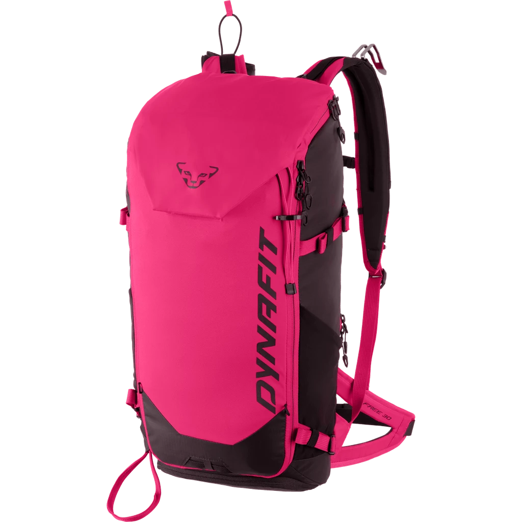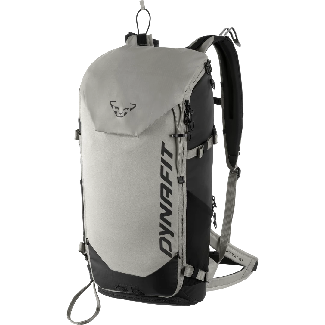 Dynafit puts their light and fast imprint on the freeride day-touring pack with the FREE 30 and FREE 32, a pair of rugged gear haulers designed to carry everything you need for a day in the backcountry. This sleek, detailed package includes the usual features you expect, like two large separate compartments for avy gear and everything else, a helmet carry system, internal hydration compatibility, ice axe attachments and both diagonal and A-frame ski carry capabilities.