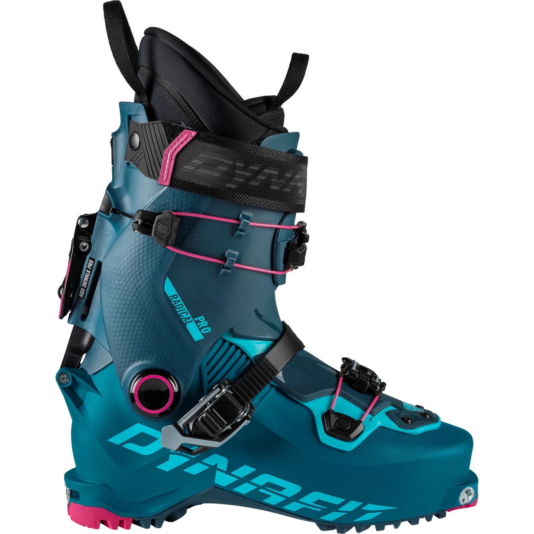 The Dynafit Radical Pro Women’s boot offers the same incredible Hoji-lock one lever throw as before, but in a new better fit and now with full touring binding compatibility. Gone are the days of the speed nose preventing compatibility with more of the alpine style bindings. It also gives you great crampon parings with all double bailed regular crampons, but still has the cut away for the Dynafit Cramp-in.