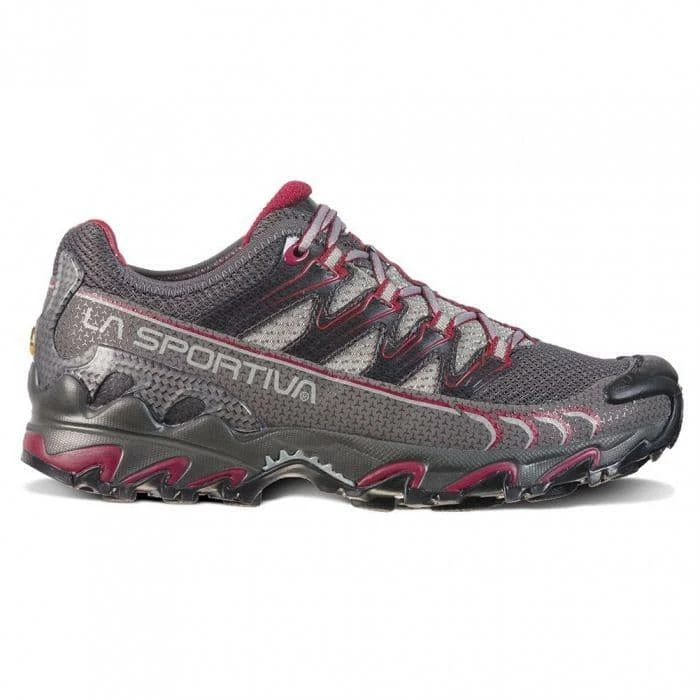 The women’s La Sportiva Ultra Raptor will keep you protected for long distances in the mountains with its full rock guard, ample cushioning, super durable toe cap, and thin plastic overlays for an ultra protective upper. While La Sportiva classifies this shoe as a trail runner, we have found this shoe to be a great crossover as a light hiker. For those of you coming from a mountaineering background, the FriXion XF sole makes the Ultra Raptor incredibly durable and provides the stickiest of rubbers.This Ultra Raptor provides the ultimate balance between stability, cushion, and traction. While this isn’t the most sensitive shoe, the Ultra Raptor allows you to feel the ground and rock underneath your feet surprisingly well. The lugs on the ultra raptor are long, tri-ripped, and multidirectional which allow you to run up and down steep and loose terrain without slipping forwards or backwards. Choose the Ultra Raptor for your next gnarly mountain adventure!