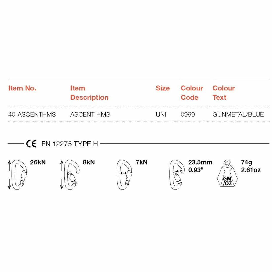 The Wild Country Ascent HMS Locking Carabiner is great full-size multi-purpose locking carabiner designed to optimize strength, performance, and durability. The Keylock nose is allows for a smooth and easy clips. The Ascent HMS maximizes gate opening and internal room for set ups. A stylist, strong, and ergonomic, the the Wild Country Ascent HMS Locking Carabiner will be a great addition to your kit.Â