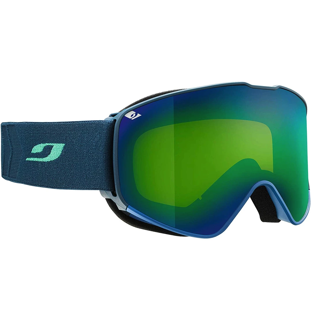 The Julbo Alpha Goggle is a large goggle that will block sun, snow, wind, and any other weather that you don’t want in your eyes. They have a Frameless design that gives you a wide, unobstructed field of vision. Their contoured shape fit perfectly with modern ski helmets and a rubberized strap stays in place. Where Julbo really shines is with their lenses. The Alpha Series features the following: