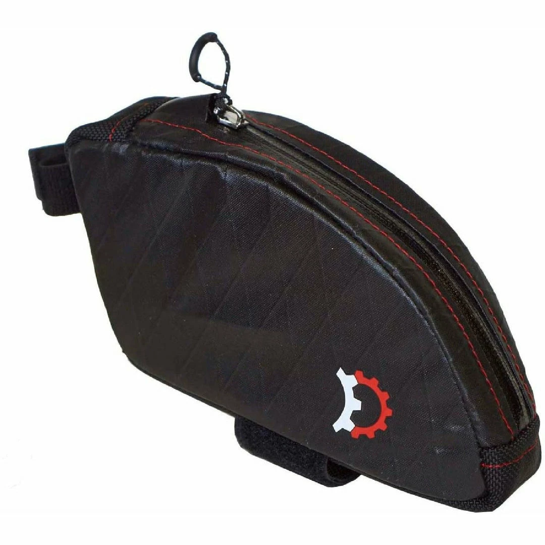 The Revelate Designs Jerrycan Top Tube/Stem Bag is a slim, rear mounting bag that is ideal for in front of your seat post. This bag fits a repair kit, lube and/or a tire very well.Â