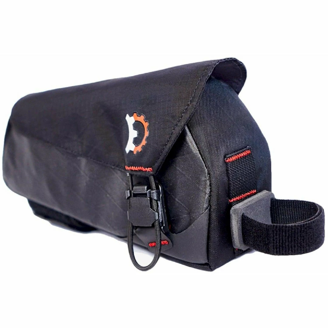 The Revelate Designs Mag Tank 2000 Top Tube/Stem Bag is one of the most relied upon bags by bike packers all over the globe. The zipperless design ensures that you will always be able to access what’s inside with only one hand. Easy closure as well with the magnetic buckle with mechanical engagement. Confusing but it really just means the magnet helps you line up the buckle so you can do that one handed as well. This is the slimmer Mag Tank compared to the Mag Tank 2000, and is designed to prevent leg movement from hitting the edge of the opening.Â