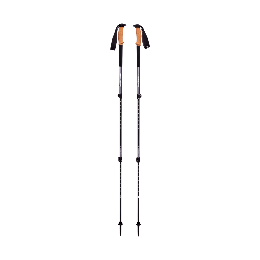 The Black Diamond Trail Cork is the ideal for 4-season mountain pursuits designed to provide premium comfort and durability. Featuring a 100% natural cork grip, these poles provide a custom, secure feel in all conditions. The dual FlickLocks® offer complete adjustability with a 100-140cm length range. These poles also feature interchangeable carbide Tech Tips which can easily be swapped out for BD’s Rubber Tech Tips (sold separately) and both trekking and snow baskets are for ultimate four-season versatility.