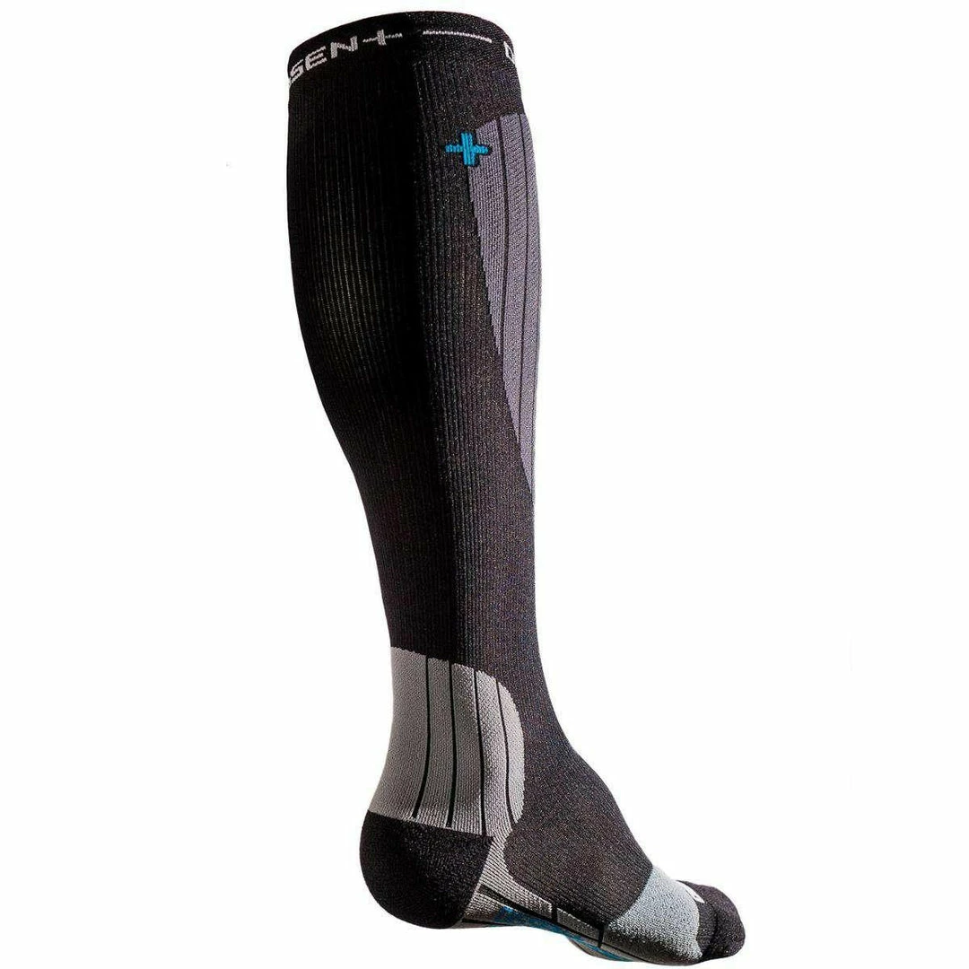 DLX-Wool gives you the warmth-when-wet and anti odor benefits of Merino. Dissent craftily built this weave in to key toe and ankle areas while keeping the thin standard GFX synthetics in the top of foot and lower leg to maintain a super precise boot fit. Graduated gentle compression keeps your socks in place on the most soggy of days and promotes blood flow. The Hybrids have quickly become a staff favorite!