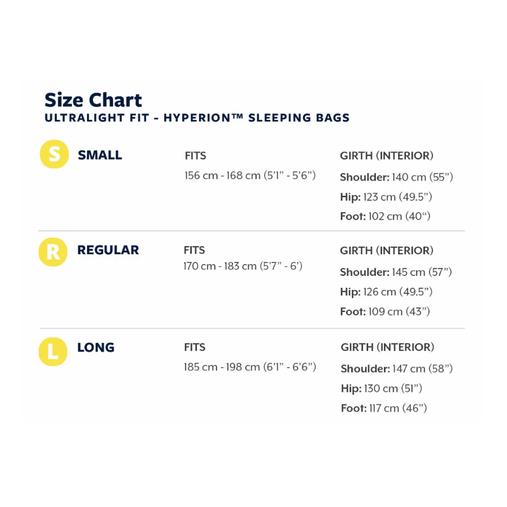 The Therm-A-Rest Hyperion 20F/-6C Sleeping Bag is a purpose built sleeping bag meant to provide ultimate comfort and warmth in an ultralight package. Whether you are backpacking or bike packing, the Hyperion Sleeping Bag Utilizes 900-Fill Nikwax Hydrophobic Down™ which provide an incredible warmth to weight ratio, so you won’t have take up much of your valuable space. The Nikwax treatment stays drier and retain loft 60 times longer than untreated down so you can stay warm and cozy even when the weather isn’t playing nice. Featuring Therm-A_Rest’s Box Baffled construction and zoned insulation, the Hyperion 20F/-6C Sleeping Bag maximizes loft and minimizes cold spots. When you’re heading out on your next backcountry adventure, give yourself the best shot at great nights sleep cuddled up in the Therm-A-Rest Hyperion 20F/-6C Sleeping Bag!