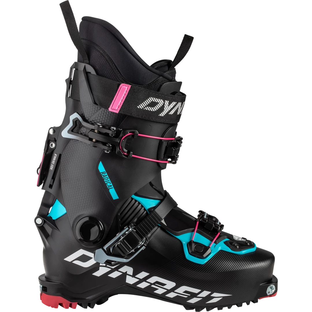 The Dynafit Radical Women’s boot offers the same incredible Hoji-lock one lever throw as before, but in a new better fit and now with full touring binding compatibility. Gone are the days of the speed nose preventing compatibility with more of the alpine style bindings. It also gives you great crampon parings with all double bailed regular crampons, but still has the cut away for the Dynafit Cramp-in.Â
