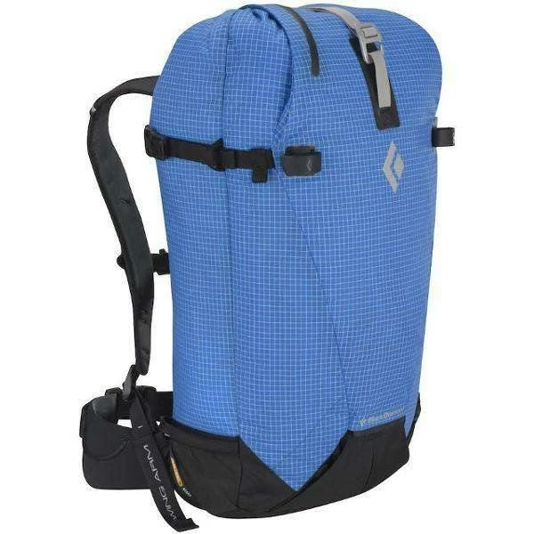 The Black Diamond Cirque Touring packs are designed for those skiers seeking technical backcountry lines or ski mountaineering objectives. This series of pack features a variety of designs implemented for weight savings and ease of use despite for those skiers who need to go light and fast, yet still carry the requisite gear for demanding technical ascents. For example, the top loading pack uses Black Diamond’s cinch-closure system enabling the user to open the pack with one gloved hand and includes a rope carrying strap. It also has connection points for technical ice equipment. The pack itself is woven out of Dynex fabric, a close relative of dyneema nylon, which is highly resistant to abrasion and tearing. The pack also features side carry or A-frame style ski or split board carrying systems and also features a side zipper for easy access to the main compartment. This pack is compatible with Avalung technology which are sold separately.