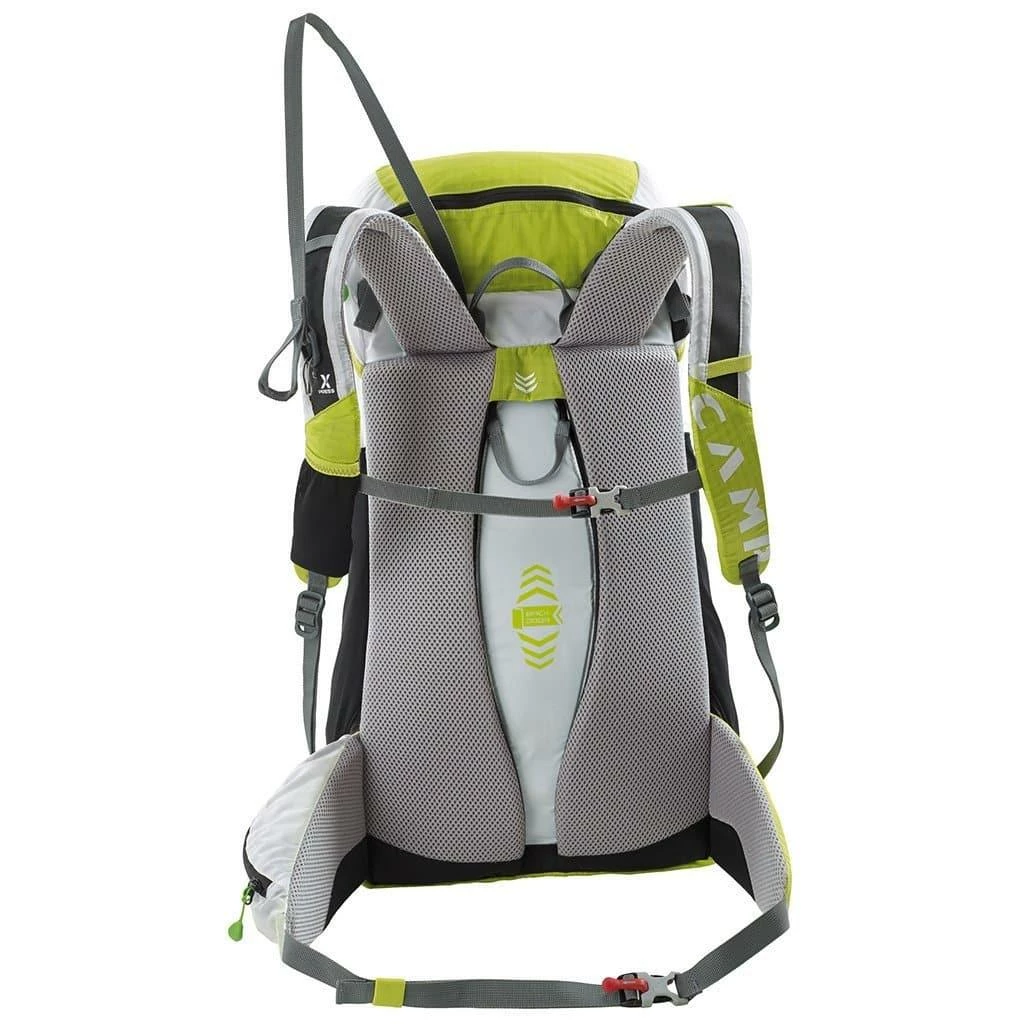 While the X3 600 has long been the top choice for weight conscious ski mountaineers, the Camp X3 Backdoor Touring Pack delivers the same kind of lightweight performance with a more durable fabric and Backdoor access making it the right choice for more routine ski tours and done-in-a-day adventures. The exclusive Backdoor feature allows access to contents of the pack without having to remove everything on top before gaining access to gear at the bottom. The new Tririp fabric is light, tough and coated for good moisture repellency and abrasion resistance. The Xpress Wire ski carrying system allows skis to be attached and removed without removing the pack. The hip belt is padded for carrying comfort. Large open mesh pockets, a spacious lid and a pocket on the hip belt allow for great organization and fast access to essentials. The X3 Backdoor also features the innovative C.A.M.P. exclusive EZ OP buckles on the chest strap and waist belt. The EZ OP buckle features a special pull tab that engages a wire to automatically open the buckle for fast and easy, one-handed operation, especially useful with frigid fingers.