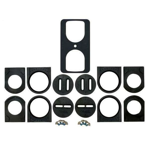 Includes 4 pucks, 4 puck gaskets, 2 universal discs – in-line slot, 2 universal discs – parallel slot, 8 – M6 x 12mm truss-head screws, and alignment guide.